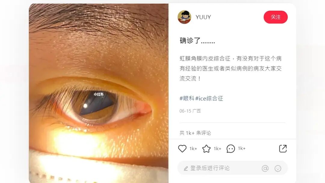 然而,她到医院看眼科后,医生竟直言「你的瞳孔怎么是三角形的?」 。她表示,自己的视力、眼压、对光全都正常,双眼视力不模糊,此前也无手术经历,眼睛也未曾受伤。最终,她确诊患上虹膜角膜内皮综合症。