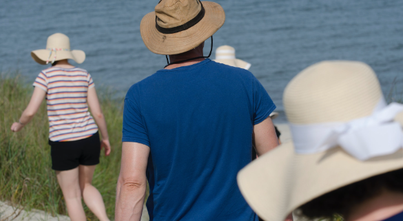 外出活动避免上午10点到下午2点,户外工作者建议每小时到阴凉处休息10~15分钟,时刻留意自身及身边同伴身体情况,避免中暑或热衰竭。