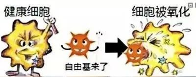 自由基攻击为人类衰老的重要原因之一。人体内的自由基主要是氧自由基,能使细胞膜上的不饱和脂肪酸过氧化,破坏细胞膜结构,同时形成脂褐素。生物膜的破坏和脂褐素在细胞中过量堆积,可致细胞死亡。细胞在脂质过氧化中生成丙三醛,可使细胞基因特别是线粒体的基因结构被破坏,使基因发生交联或断裂,不易酶解。自由基对机体的损害是多方面的,自由基能破坏蛋白质、核酸、DNA、细胞膜和酶的结构,引起代谢紊乱和多种老年病。导致体内自由基增多的因素有:环境污染、体内生化代谢紊乱、各种放射性物质的辐射、霉变食品、外伤、感染、吸烟和缺血等。