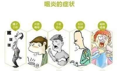 急性咽炎的症状是嗓子痛、发烧,检查咽部为急性充血肿胀;而慢性咽炎主要为局部症状,无全身症状。病人感觉咽部不适、咽干、咽痛,有黏液不易咳出,严重者有刺激性咳嗽或刷牙时恶心。检查时会发现咽部黏膜慢性充血,呈暗红色,表面有少量黏稠分泌物,咽后壁可见淋巴滤泡。