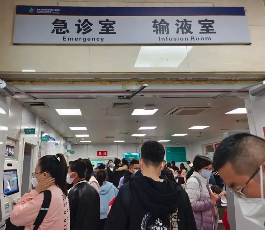 在首都儿科研究所,前往急诊室、输液室的儿童及家属。 (《人民日报》)