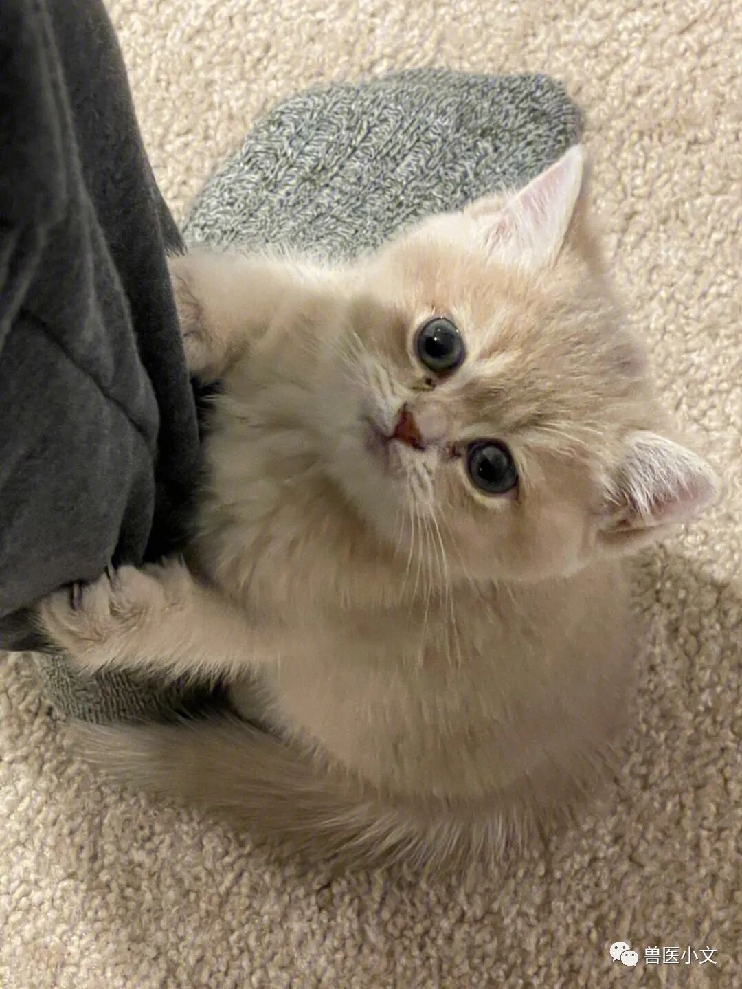 “紧抱大腿”:寻求铲屎官的宽恕一些猫咪会在意识到自己犯错后,放下猫咪的自尊,紧紧抱住主人的大腿。这种行为是它们在向主人表达歉意的同时,寻求宽恕的一种方式。猫咪的这种行为很少见,表明它们对主人的依恋和信任,也表达了它们的歉意。