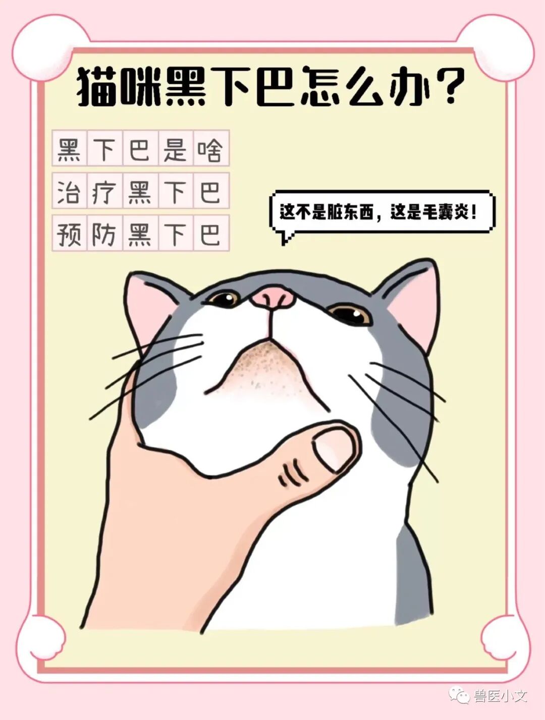 如果你尝试了上述方法但没有效果,或者猫咪的下巴情况持续恶化,建议及时前往宠物医院进行检查和治疗。