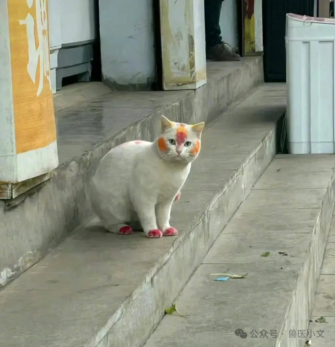 网友@momo说:啊?真的没人知道吗,一般过年的时候才涂成这样,应该是有主人的,但是应该是乡下散养的猫咪吧,一个是为了过年喜庆,还有一个是因为它是白猫,中国人不是对白的很敏感吗,怕他过年跑去别人家里别人嫌晦气欺负他。然后一般染色的颜料就是染红鸡蛋的颜料,一般问题不大的!