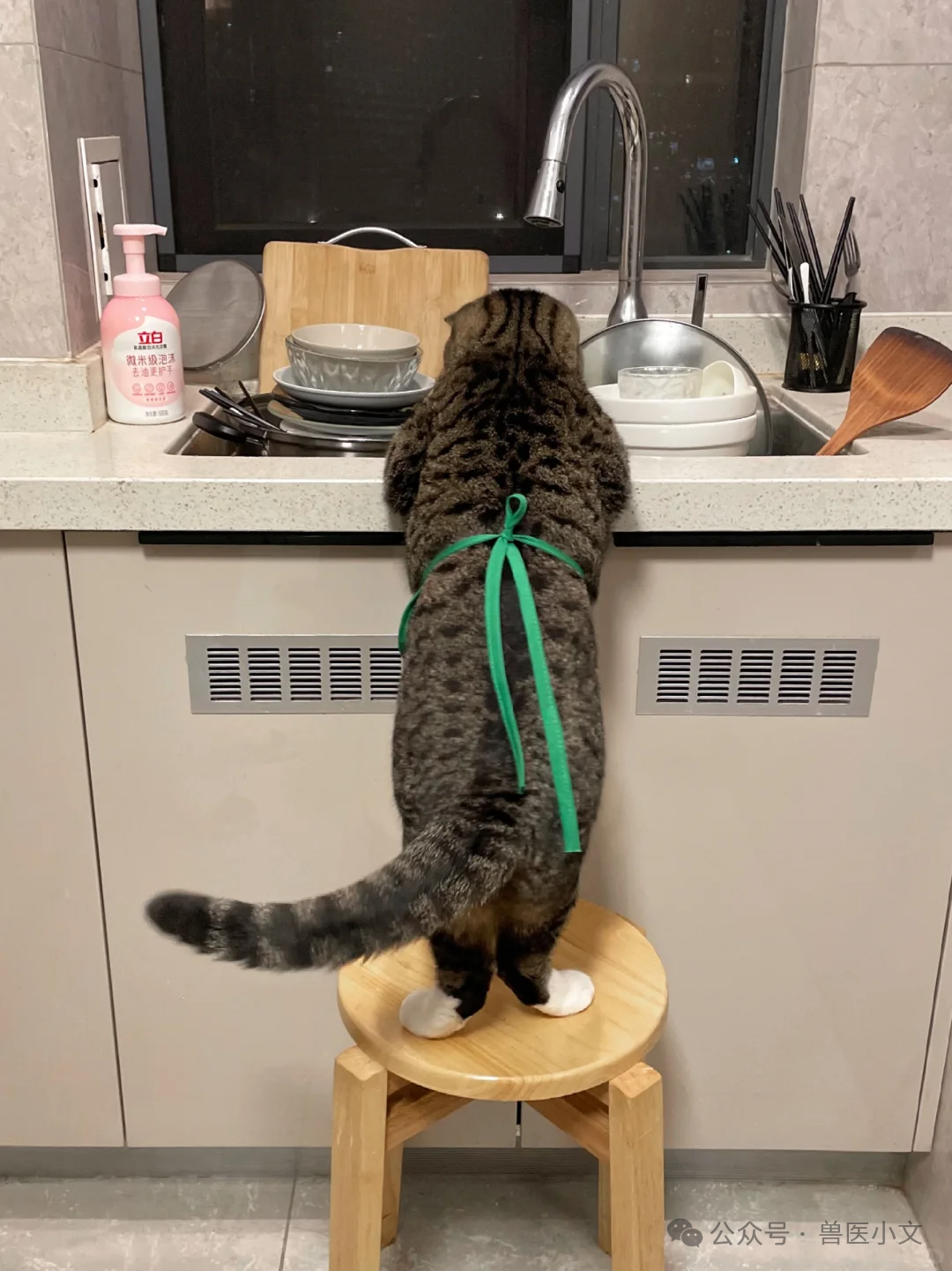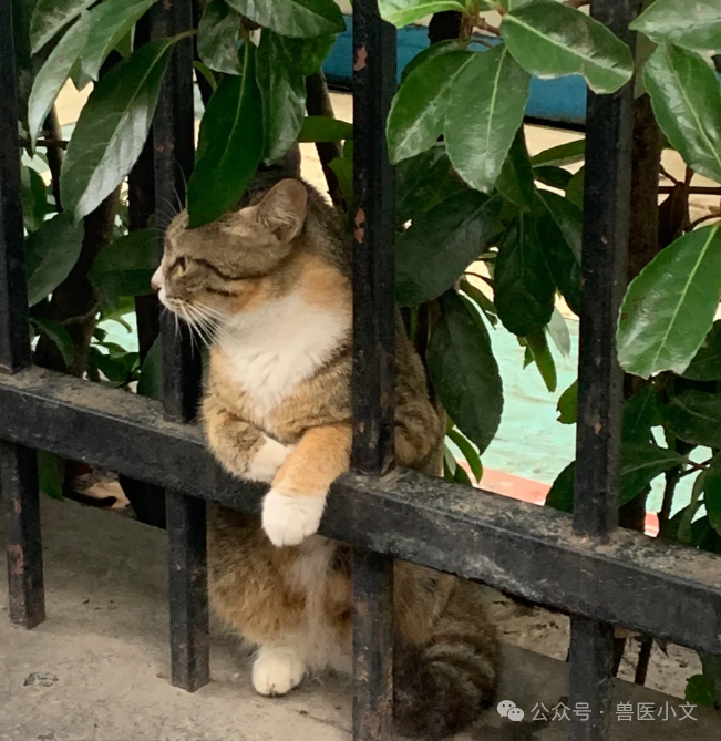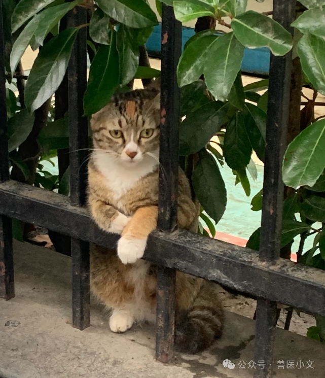 按网友@小杨要加油❤,描述,事发现场,路过看见有人吵架回头,意外看见这只喵喵趴上面看人家吵架,老可爱了!而且她还在住院部站在那里也是这个姿势看人家孕妇姐姐们进进出出