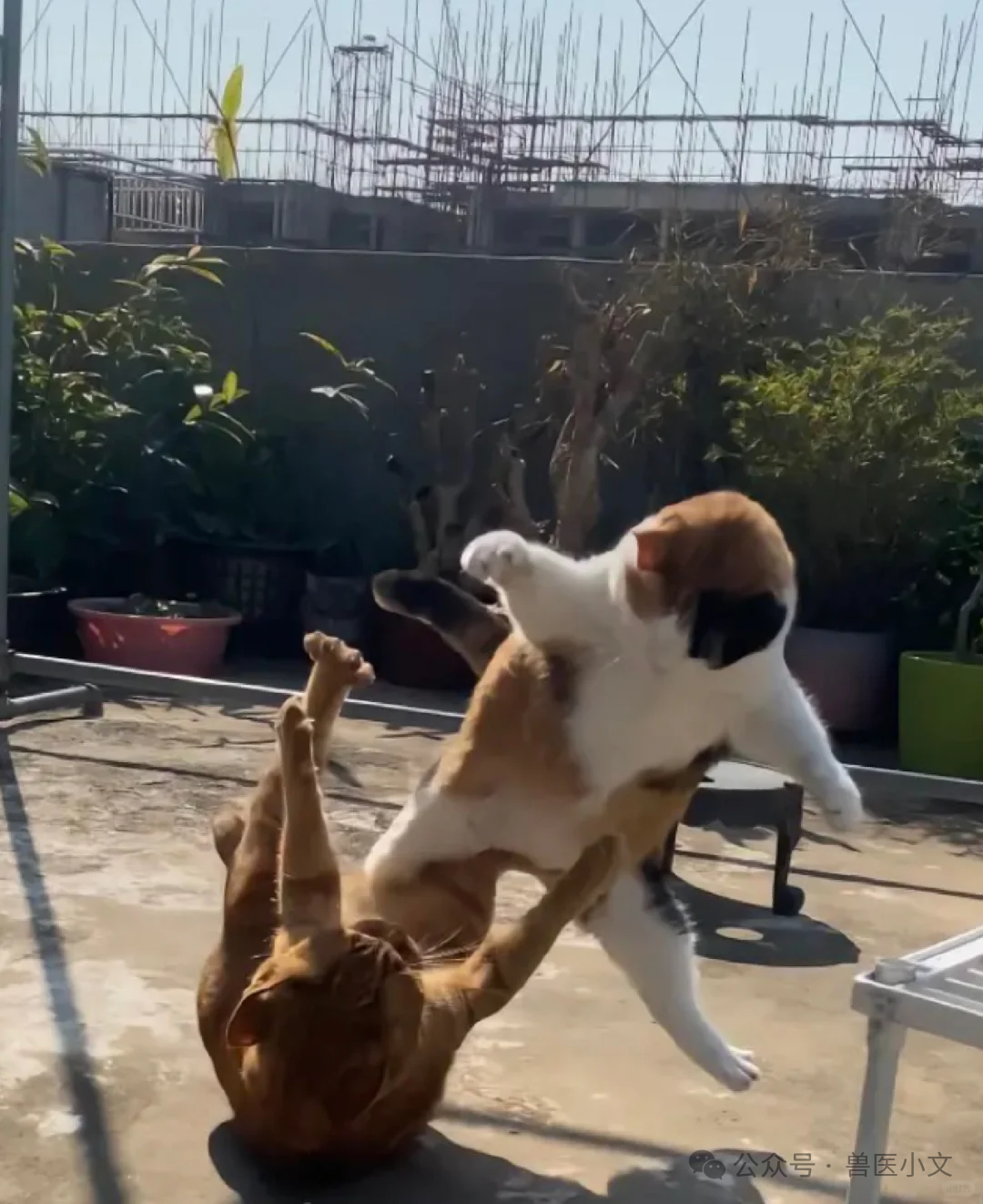 下图:具体过程就是,妹子晚上听到自己家的猫咪惨叫,迷迷糊糊开灯来查看,原来是一只陌生的狸花猫对着自家的猫疯狂输出.......