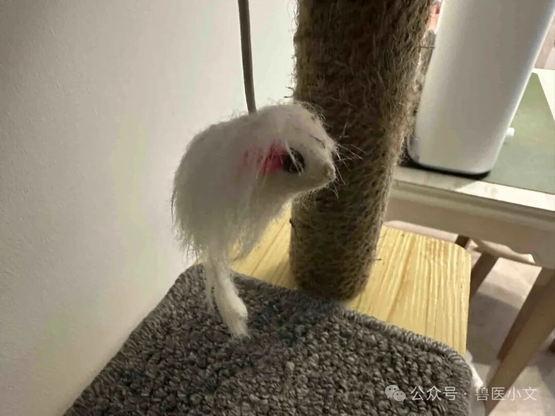 @小猫十一,表示:自家的猫爬架上的老鼠玩具本来是老鼠自然形态,现在有幸做了拉直......