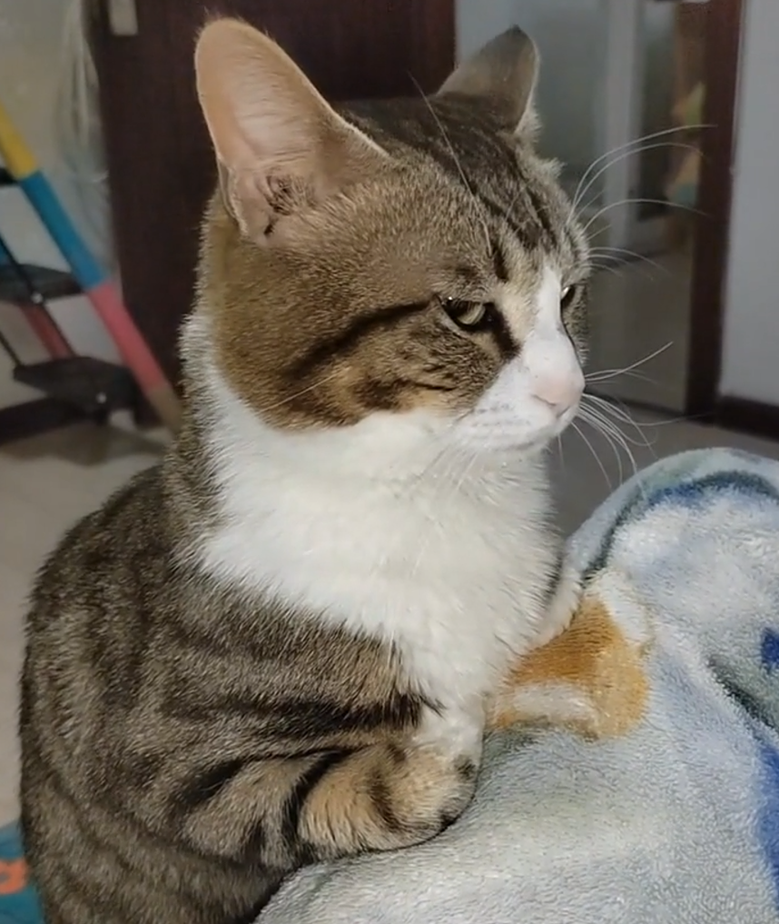(PS:如果猫猫经常这样坐最好带去检查一下呢,坐得很直是为了缓解疼痛才用的姿势,不过网友我是小馒头的猫猫并没有这个问题)
