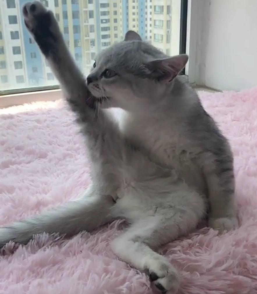 如果说大猫是因为学习能力强,跟着主人学会了一些动作,那么有些小猫就是天赋异禀了
