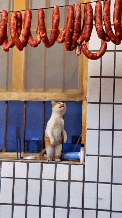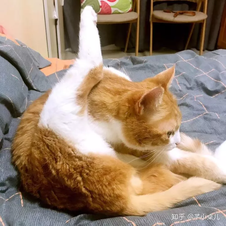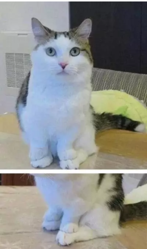 还有些猫咪,已经自觉地自己是高等生物,所以前脚是肯定不能沾地的.....