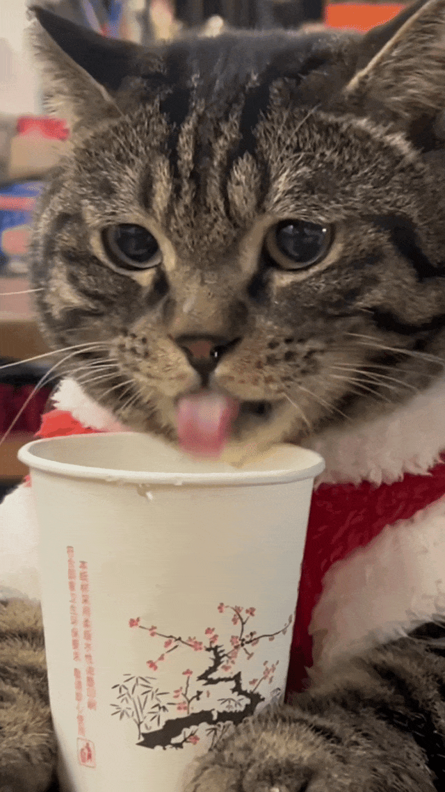 有些猫,喝水像人,有些猫不知道偷偷读了什么书,已经熟练的开始炫饮料了