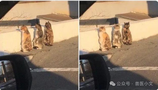 三只正在看热闹的小猫咪