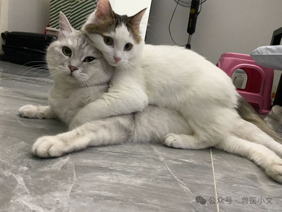 如下图,网友抓拍到白猫欺负长毛喵~~