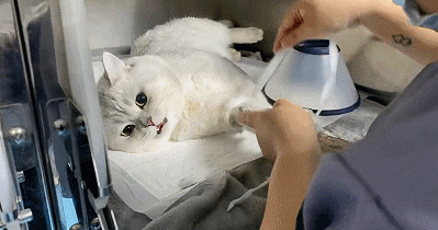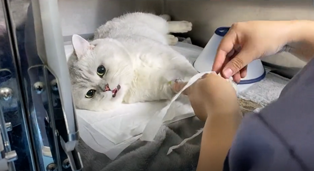 和偷偷放屁的喵不同,还在麻醉中的喵,看到了铲屎官,看到了医生,想着自己的撕裂~~~