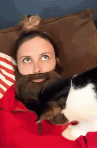 当,挂上了假胡子以后,修猫才以为是爸爸会来了,略微给点面子.......