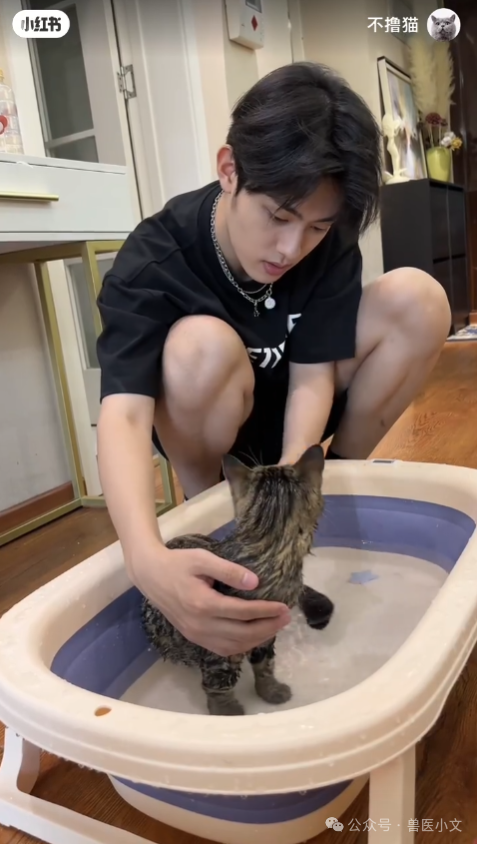 或许,有朋友说,这是洗澡,猫咪洗澡都害怕,可能平常你洗的多,猫咪已经害怕你了,所以才让帅哥洗.........