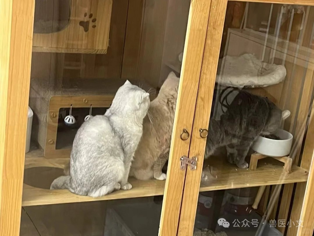 网友@橘子味的猫🐈发图说,自己的猫咪,每次吃饭都要排队.....