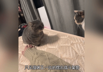 当主人把手放下,小猫咪又开始蓄力,准备攻击......