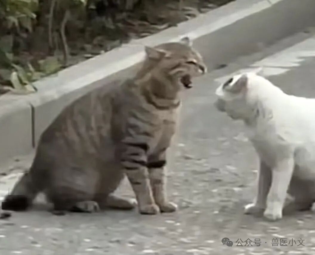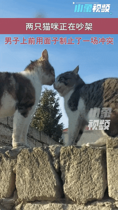 瞅瞅,同样是吵架,猫猫的飞机耳都亮出来了,但当小可爱介入,斗争分分钟结束.....