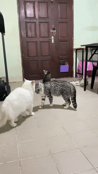 浙江杭州小姐姐家里养了两只猫,平时也还好,但养猫的诸位都知道,多猫家庭,有纷争实属正常,这不,平常卿卿我我的两个小家伙,这会对上了......
