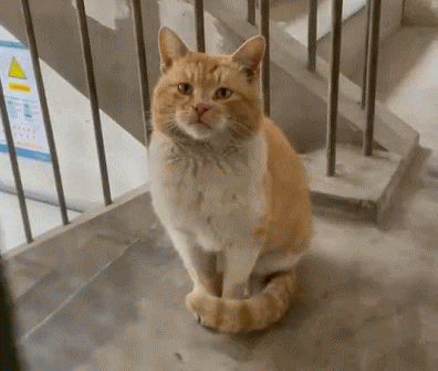 铲屎官在听到声音后,顺着楼层找了猫猫,猫猫此时更为有趣,这小表情彷佛再说,铲屎的你干啥呢,你找我找到那里去了.......