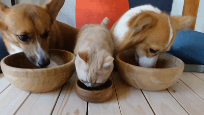 所以,世人只看到了猫咪吃狗碗里的东西....