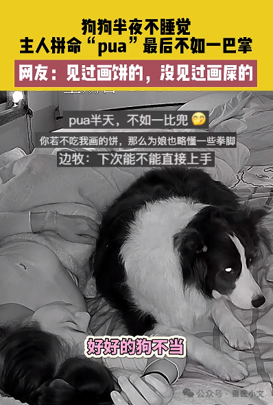 事发当天,博主已经很困,但狗子依旧蹦来蹦去不停歇,于是博主@边牧追风开始精彩的PUA.....