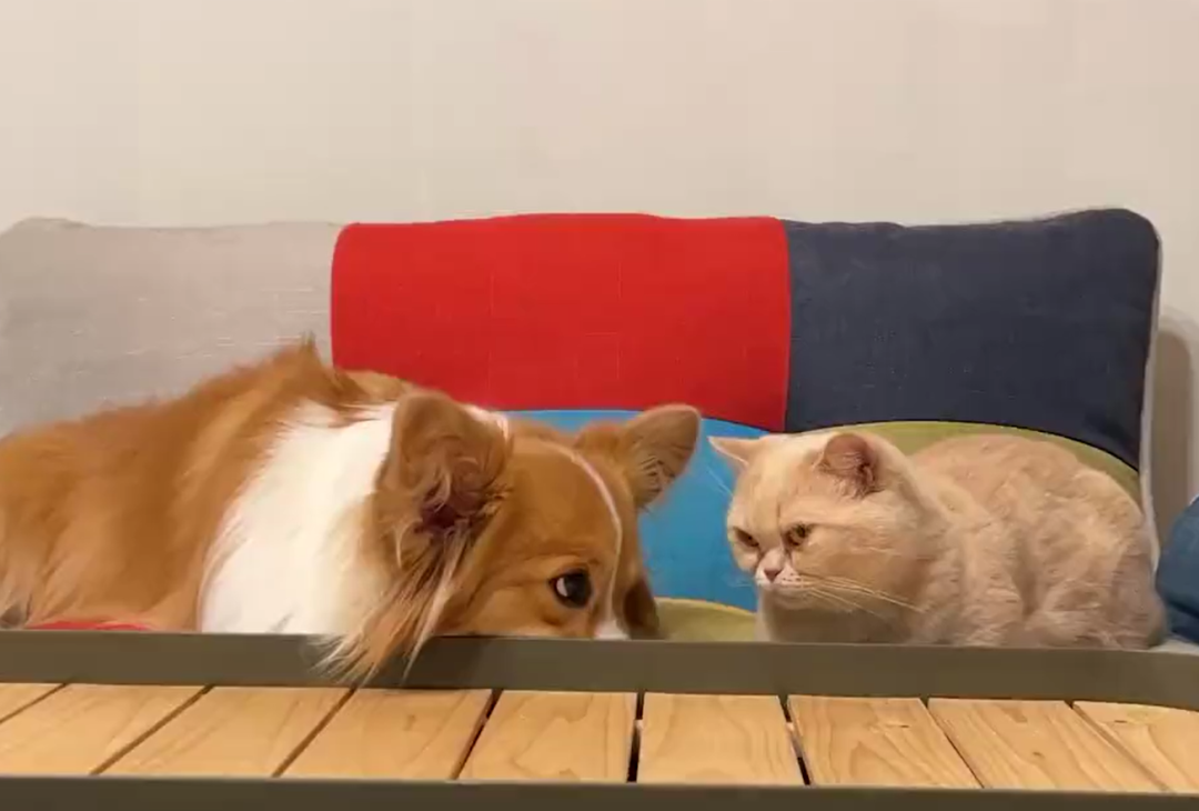 为了让家里能够和谐,铲屎官又养了一只喵妹妹,打算让其作为狗子的调剂......