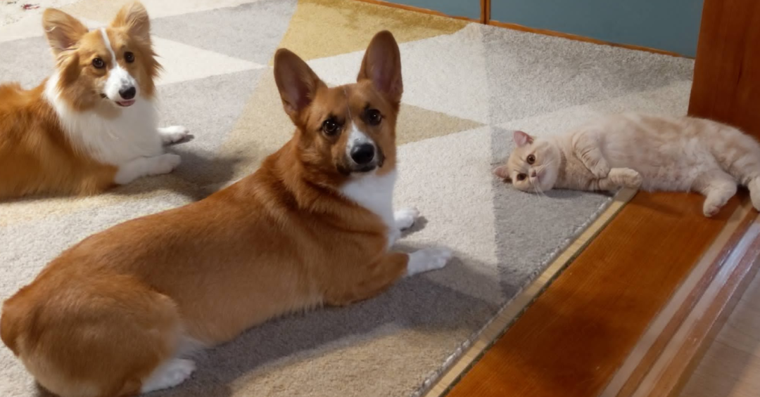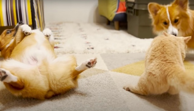 需不知,这是龙猫大人的气场所赐,瞅瞅柯基这一脸惊恐迟疑的表现....