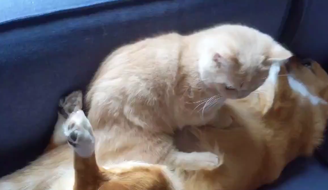 在日常的睡觉休息时光,龙猫也不放过对狗子的PUA,狗毯子牌按摩垫就是这样的由来....