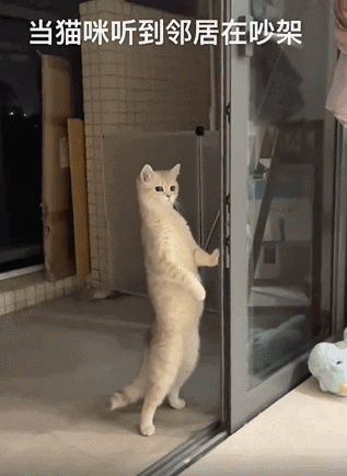 神秘网友@没脾气的娃哈哈,说自己家的猫咪超爱看热闹,一旦有风吹草动,就大半夜也不睡,立马凑热闹
