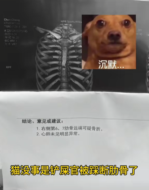 经过吃瓜网友的计算,猫踩你那一下给到你肋骨的压强大约在130psi左右,正常人肋骨断裂需要的压强在400psi 以上,经诊断您可能患有骨质疏松,建议去医院做全面检查.....