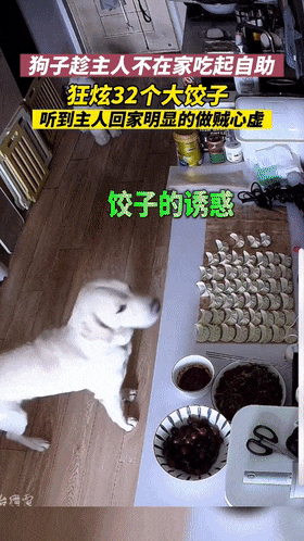 妹子前脚出门,狗子狗心痒痒,表示对美食一点也没有抵抗力.....