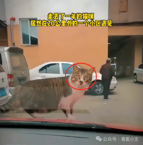 据网友分享,画面中是主人一年前丢失的猫咪,本以为此生再无相遇的可能,却幸运的在一年后,在20公里外的一个小区遇见了。