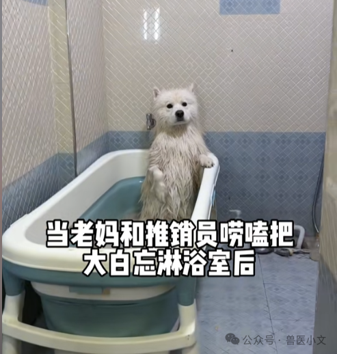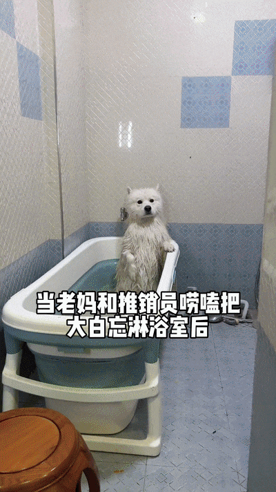 dy博主@天上掉下个大白酱养了一只非常漂亮的萨摩耶,事发当天博主的妈妈放好水给狗子洗澡,洗到一半时来了推销员,于是妈妈坐下和推销员聊天.......