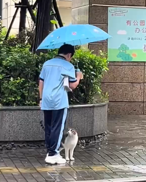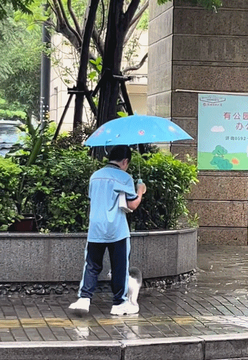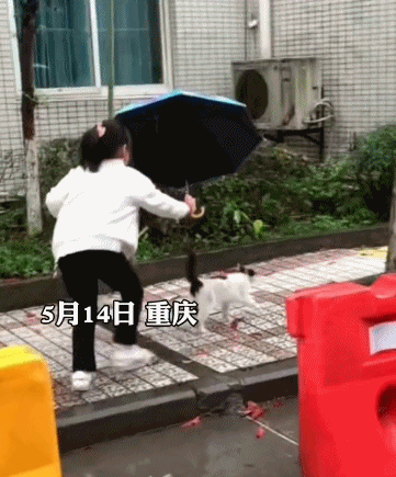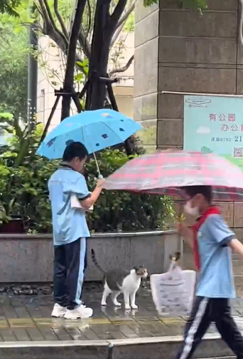 同样是下雨,为了流浪猫不被雨淋,小姑凉冒着雨为小猫咪打伞.....