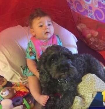 下面这只名为波罗的黑色贵宾犬也是如此,作为家里的前辈,当家里降生了小宝宝后,狗子一天天的守护着宝宝.....