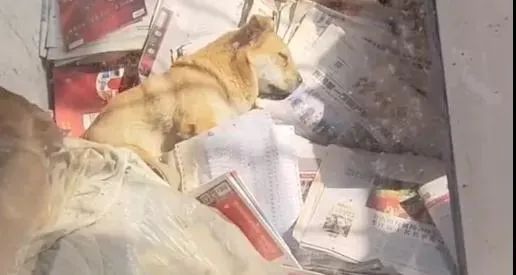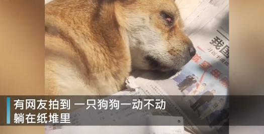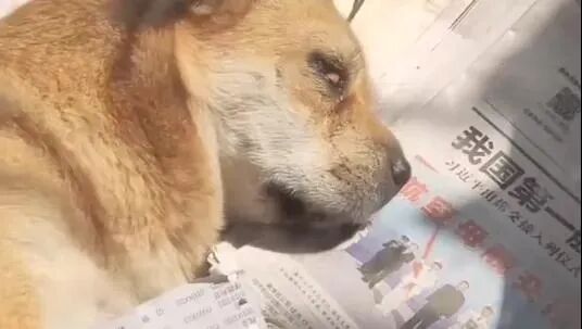 据知情人介绍,躺在废报纸上的狗子,正伤心流泪,而让它如此伤心的原因是它的主人,一位老奶奶过世了....