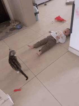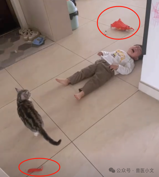 有网友说,猫把东西放在你必经之路是表达想要把这东西送给你的意思,也有邀功的意思。参考送老鼠送昆虫的情况。所以孩子踩到玩具摔倒哭,猫也一脸懵逼...