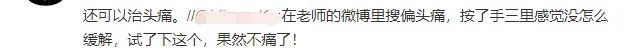 网友:还可以治头痛。在老师的微博里搜偏头痛,按了手三里感觉没怎么缓解,试了下这个,果然不痛了!