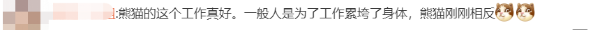 网友:熊猫的这个工作真好。一般人是为了工作累垮了身体,熊猫刚刚相反。