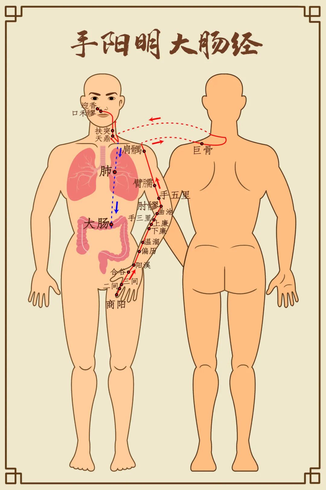 童子功-去结摩捋大肠经,做50~100下,身体微微出汗为度,经期可做,孕期不要做。