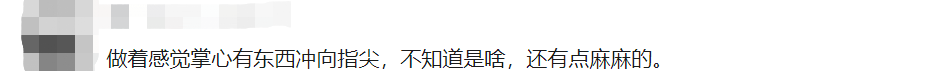 网友:做着感觉掌心有东西冲向指尖,不知道是啥,还有点麻麻的。