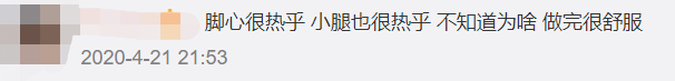 网友:脚心很热乎,小腿也很热乎,不知道为啥。做完很舒服。