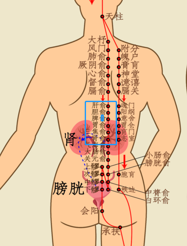 网友:这个动作后背处不仅健脾,肝肾胃都保健了,手正好在足太阳膀胱经上。