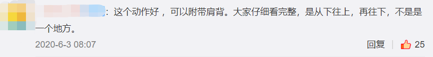 网友:这个动作好,可以附带肩背。大家仔细看完整,是从下往上,再往下,不是只是一个地方。