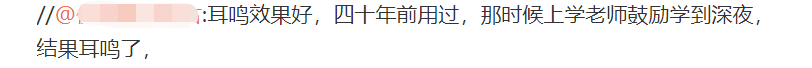 网友:耳鸣效果好,四十年前用过,那时候上学老师鼓励学到深夜,结果耳鸣了。