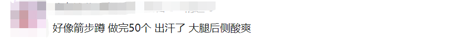 网友:好像箭步蹲,昨晚50个出汗了,大腿后侧酸爽。