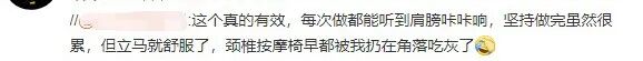 网友:这个真的有效,每次做都能听到肩膀咔咔响,坚持做完虽然很累,但立马就舒服了,颈椎按摩椅早都被我扔在角落吃灰了。