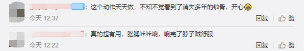 网友:真的超有用,胳膊咔咔响,响完了脖子贼舒服。